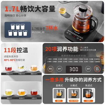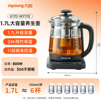 九阳(Joyoung)0胶水养生壶煮茶器煮茶壶11段温控24h预约保温 1.7L玻璃花茶壶 WY170