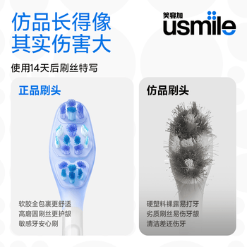 usmile笑容加缓震电动牙刷头 缓震亮白刷头2支装 全软胶不打牙 刷出自然白 适配P10P20PRO等成人电刷