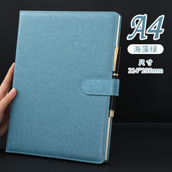 嘉然恒 A4大本子360页加厚笔记本本子文具硬皮面搭扣大号记事本大学生考研用本商务会议记录本定制海藻绿