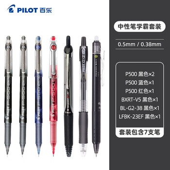 百乐(PILOT)P500/v5针管中性笔0.5按动签字笔0.38学生考试水笔文具套装 黑红蓝7支混色装