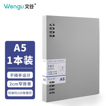 文谷(Wengu)A5/60张可拆卸不硌手铁夹活页本20孔 简约纯色横线本大容量学生记事本考研用笔记本子 BI010A5灰