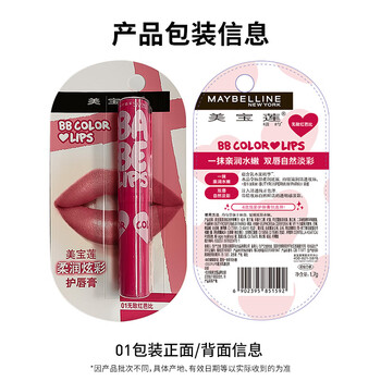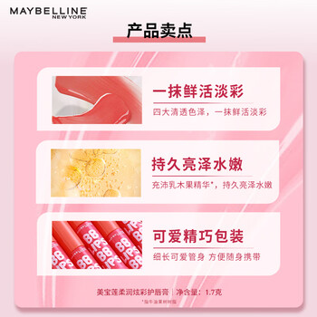 美宝莲宝蓓爱炫彩护唇膏 01芭比水红色 保湿滋润1.7g 生日礼物女