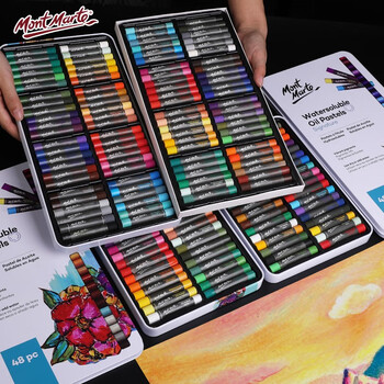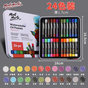 【全网低价】蒙玛特(Mont Marte)油画棒24色 水溶性油画棒儿童绘画画笔涂鸦画画蜡笔套装 美术不脏手水洗铁盒装MMPT0027美术写生