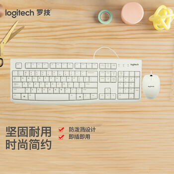 罗技MK120 键鼠套装 有线键鼠套装 办公键鼠套装 电脑键盘 笔记本键盘 联想全尺寸 白色 RH.