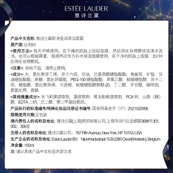 产品(注册/备案)名称 雅诗兰黛净莹润泽洁面霜