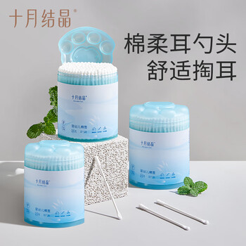 十月结晶婴儿棉签 200支*3盒宝宝专用掏耳鼻屎清洁棉棒耳勺螺旋双头