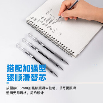 得力(deli)臻顺滑无印风中性笔 0.5mm加强针管笔头学生中性笔刷题笔 ins冷淡风 黑色12支/盒S108