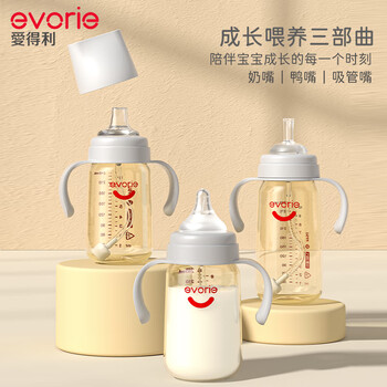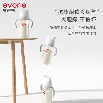 爱得利(evorie) 吸管奶瓶1-3岁 婴儿ppsu12个月以上300ml宽口径带手柄重力球