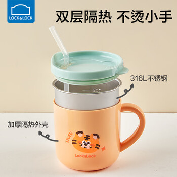 乐扣乐扣儿童水杯家用敞口杯宝宝喝奶杯2岁幼儿园吸管杯3岁牛奶杯多用杯子