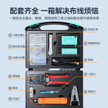 山泽(SAMZHE)网络工具箱套装工具包 多功能网线钳水晶头测线仪剥线刀打线刀扎带护套压线钳工具箱 XP-110*1