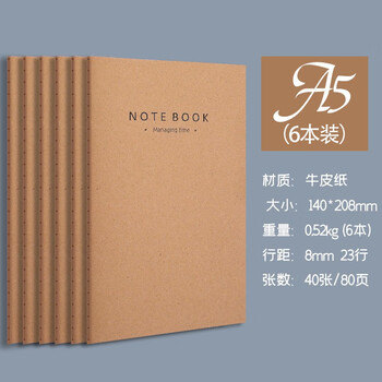 法拉蒙 faramon 6本装A5牛皮纸笔记本子软抄本缝线加厚记事本办公文具大号记录本