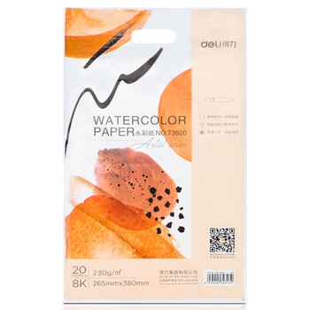 得力(deli)8K水彩纸粗纹230g美术绘画纸木棉纸浆初学者水彩水粉画专业用纸8开20张73920