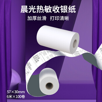 晨光(M&G)紫晨光 6m热敏收银纸 银联刷卡机打印纸 57*30mm移动点单热敏纸 100卷/箱APYUX55J