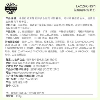 LAOZHONGYI祛痘精华洗面奶