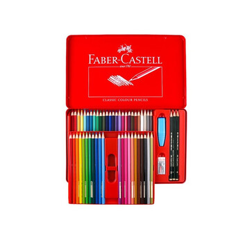 辉柏嘉(Faber-castell)油性彩色铅笔绘画套装48色红铁盒+50孔笔帘115848美术写生