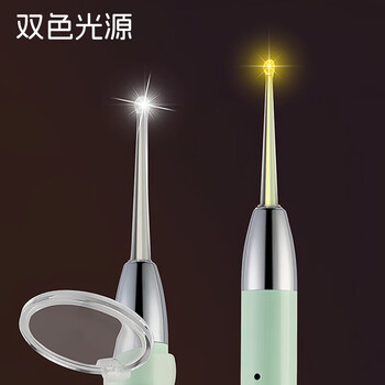 充电发光耳勺*1,勺头*2,硅胶勺头*1,电子发光耳镊子*1,电子发光鼻夹子*1,PP收纳盒*1,放大镜*2