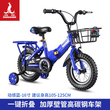 凤凰(Phoenix)儿童自行车宝宝脚踏车儿童折叠自行车4-8岁童车 陆寻 蓝色 16寸