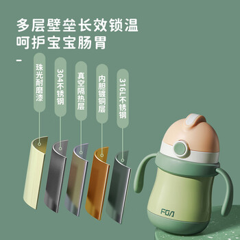 FGA富光儿童保温杯宝宝幼儿园吸管鸭嘴学饮杯316L不锈钢喝水壶杯子粉