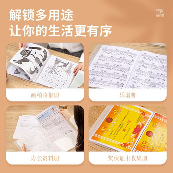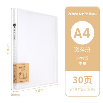 金得利A4资料册30页文件收纳册奖状收集册孕妇产检报告收纳册文件册插页文件夹插页袋乐谱夹透明CF833