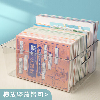递乐 书箱透明书籍文件框绘本书籍收纳箱整理箱玩具收纳盒桌面储物箱 学生书桌装书盒子 7113透明大号