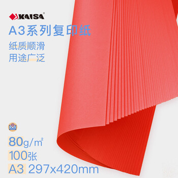 凯萨(KAISA)A3/100张80g大红色打印纸 多功能复印纸彩纸办公会议双面加厚纸彩色手工纸剪纸折纸绘图纸