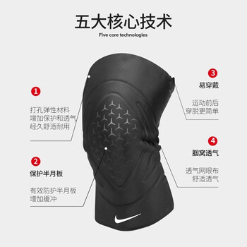 耐克专业运动护膝篮羽毛球登爬山半月板防护N1000674010M码两只