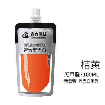 青竹画材(CHINJOO)水粉颜料补充包流光白袋装100ml果冻颜料补充装艺考集训绘画颜料便捷装桔黄速写马克笔绘画