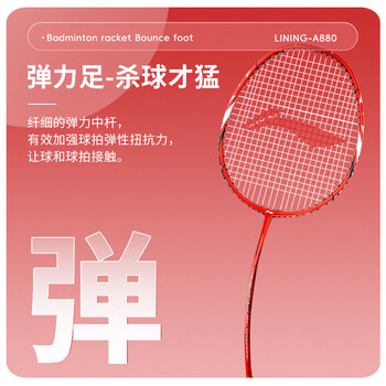 李宁(LI-NING)羽毛球拍单拍全碳素3u男女初学3U A880T红色 (已穿好线24磅)