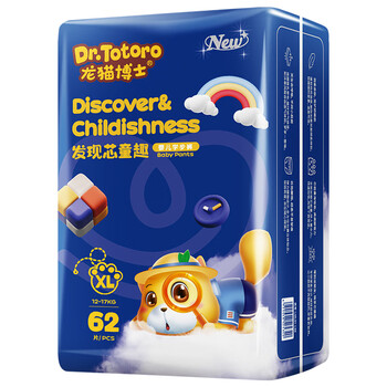 龙猫博士芯童趣拉拉裤XL码62片【11-13.5kg】婴儿尿不湿超薄透气尿裤
