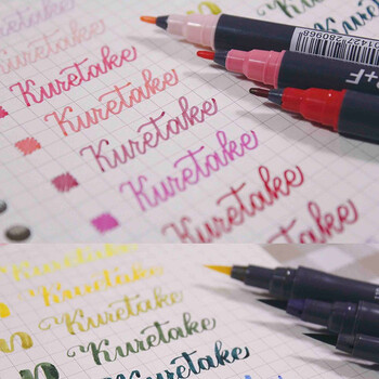 吴竹(KURETAKE)进口ZIG双头软毛水彩笔粉红火烈鸟软毛硬笔两用单支装TUT-95-222水彩笔