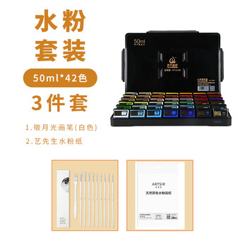 颜料42色+颜料盒+四季画笔1套+水粉纸1袋