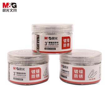晨光(M&G)3#镀镍回形针 金属曲别针 办公用品 PVC筒装 200枚/筒 3筒装ABS916S5开学必备