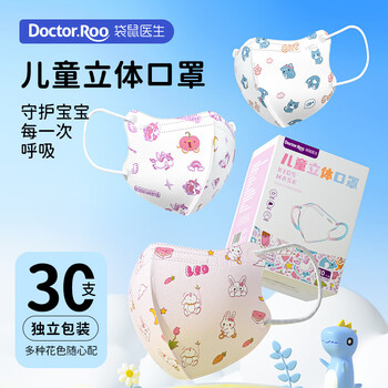袋鼠医生儿童口罩3d立体0-3岁婴儿口罩6-12月宝宝口罩亲肤透气防尘粉30支