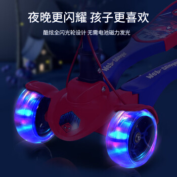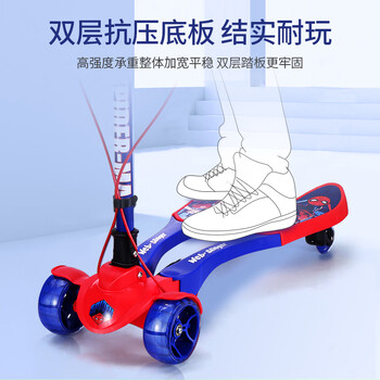 迪士尼(Disney)儿童蛙式车6-14岁蜘蛛侠踏板车可升降折叠滑板车宝宝四轮滑滑车