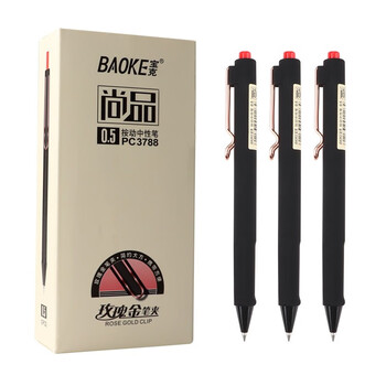 宝克(BAOKE)PC3788 按动中性笔0.5mm水笔签字笔 红色12支/盒 办公用品