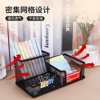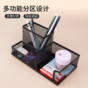 优必利 方形笔筒铁网简易笔筒铁质办公收纳 三格组合 9128A