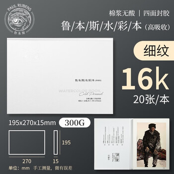 鲁本斯(PaulRubens)高吸收水彩本全棉浆加厚16K细纹300g素描本图画本美术绘画本水彩纸20张0110009002