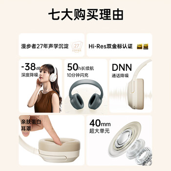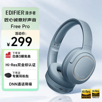 漫步者(EDIFIER)Free Pro 主动降噪耳机 头戴蓝牙耳机 手机耳机 音乐耳机 雾霾蓝