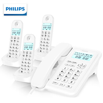 飞利浦(PHILIPS)数字无绳电话机 无线座机 子母机 办公家用 信号覆盖广 屏幕白色背光 DCTG167一拖三白色
