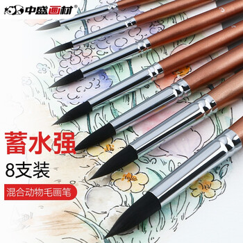 中盛画材(transon)水彩画笔套装美术画画勾线描边笔混合动物毛水彩专用毛笔面相笔8支装美术写生