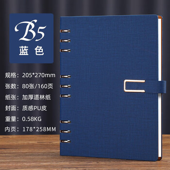嘉然恒 活页本B5加厚搭扣笔记本子文具简约记事本商务办公会议记录本可拆卸环扣活页学生日记本定制-蓝色