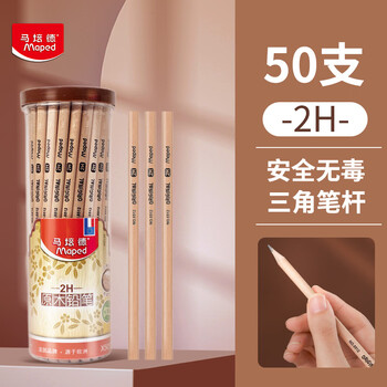 马培德(Maped)原木2H铅笔 儿童三角杆铅笔书法练字素描绘图铅笔 学生铅笔正姿书写练字笔 851250CH【50支/筒】