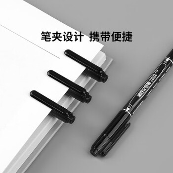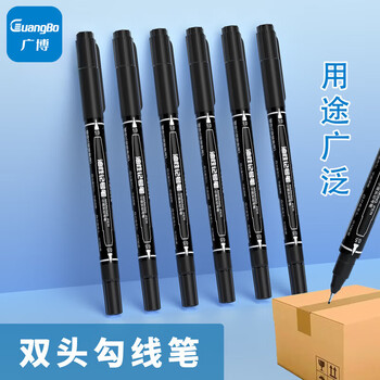 广博记号笔小双头勾线笔油性笔 美术专用学生描线笔马克笔防水速干签到笔 黑色12支/盒B09007D