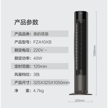 美的(Midea)FZA10XB无叶电风扇塔扇卧室客厅家用内旋摇头定时机械节能柔和立体风可拆洗
