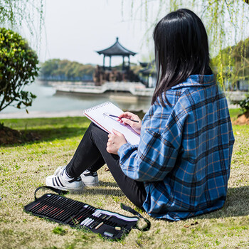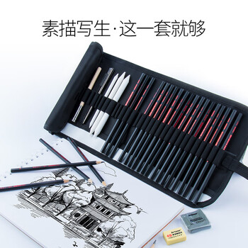 中盛画材专业素描铅笔28件套帆布笔帘绘图套装A4素描本美术写生