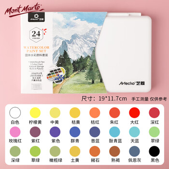 蒙玛特24色水彩固体颜料美术学生考试级工具套装块状盒调色绘画进阶套装艺蔻系列SX-ATOD-WP2406-7jt