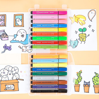 得力(deli)水彩笔70721萌伊学生儿童涂鸦绘画填色笔套装美术用品文具玩具儿童礼物收纳盒水溶性18色