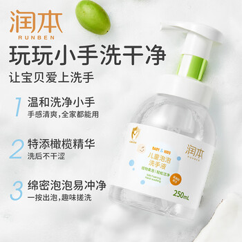 润本儿童泡泡洗手液250ml宝宝洗手液杀菌温和不伤手按压泡沫型家用