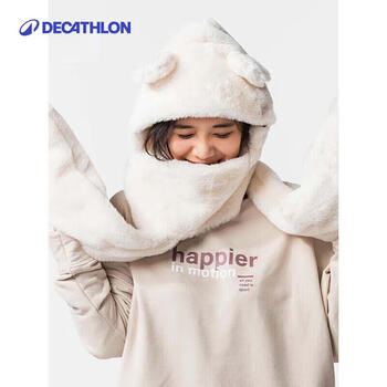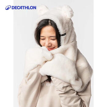 迪卡侬熊抱抱围巾帽子一体秋冬毛绒熊耳围脖可爱OVWH乳白色均码-4804264