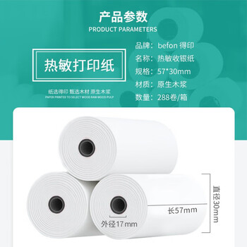 得印中高品质热敏收银纸57*30mm美团外卖po超市小票 288卷餐饮收银机打印纸足米数